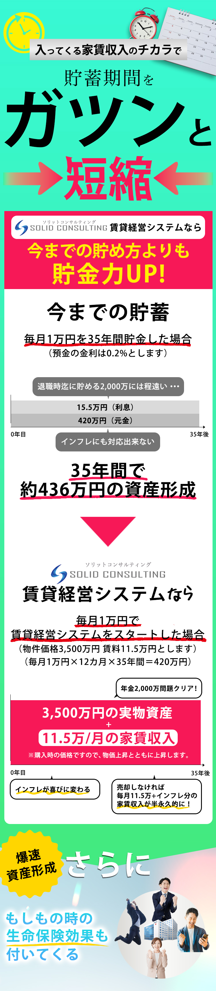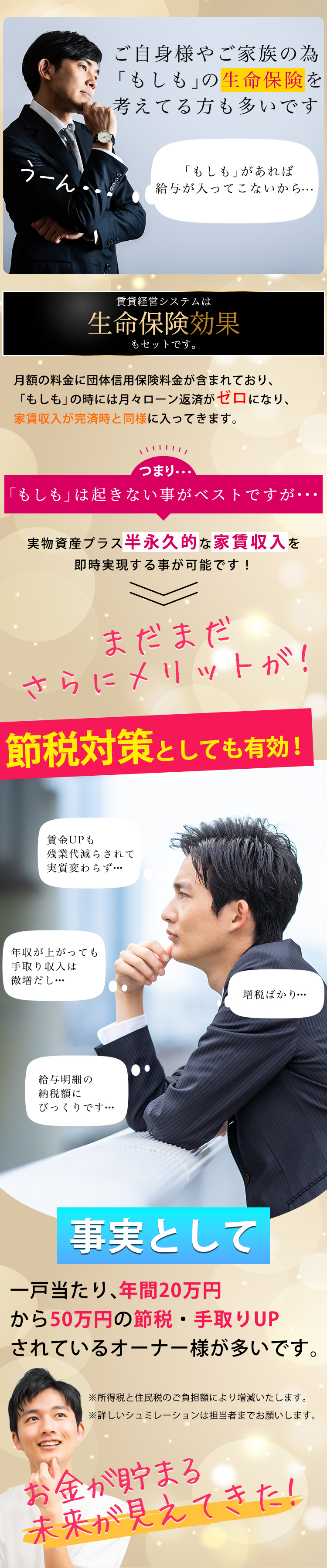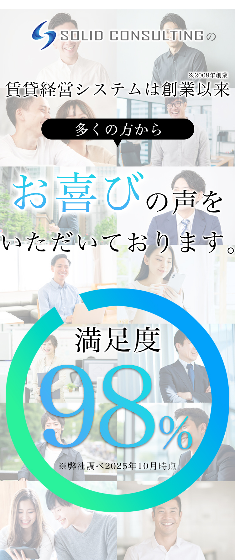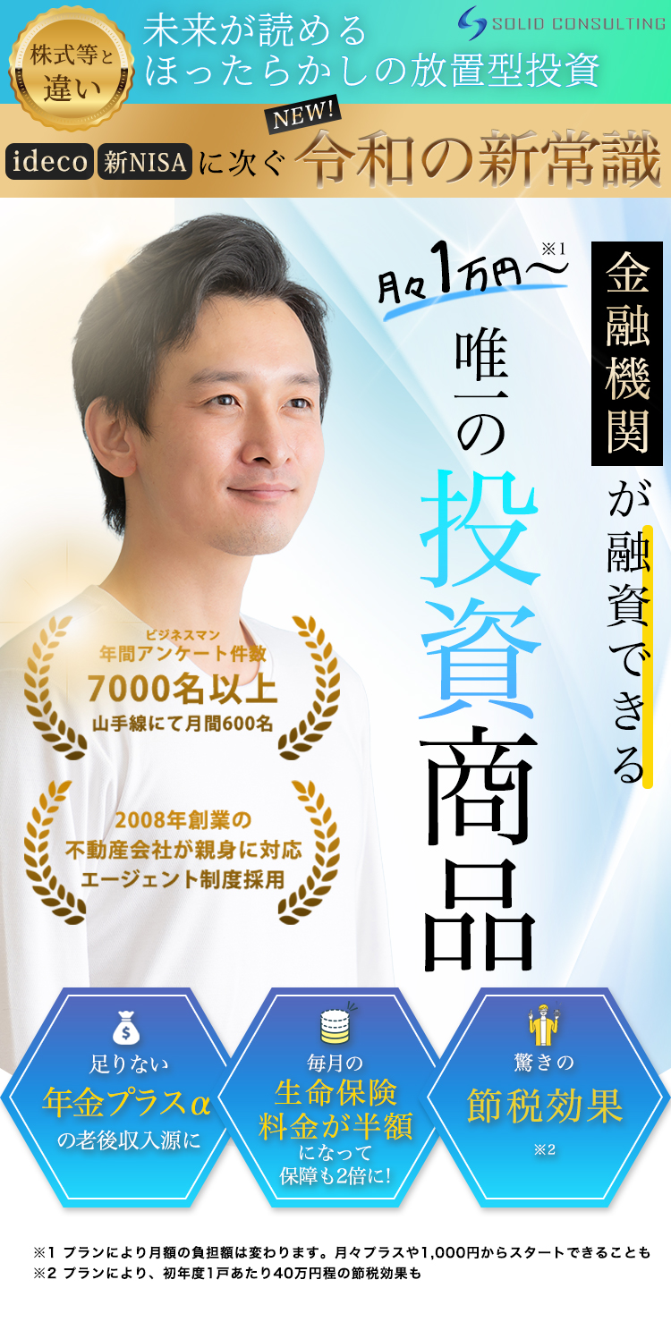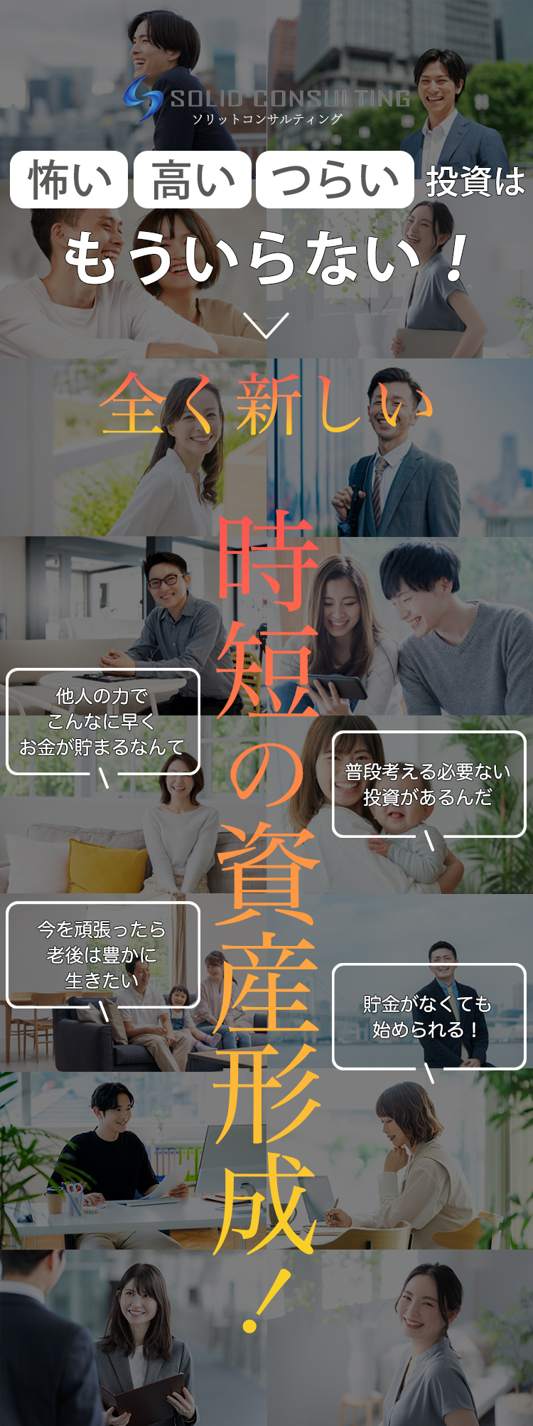 仕事は忙しくしておりましたが、家族にも残せる資産を自分が作れることにやりがいをとても感じております。税金が高いことはあきらめてましたが、この節税を考えれば皆様が取り組む理由も納得です。紹介した知人も喜んでおりますが、ソリットさんにはこの仕組みをもっと世の中に広めていただきたいです。応援してます。