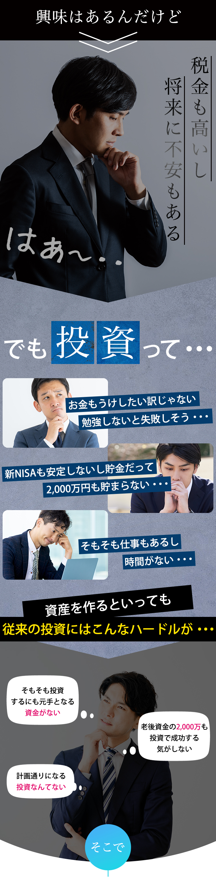 不動産投資の話は営業が来ており知っていたのですが、自分には関係がないと思っていました。新NISAも始めたのですが、